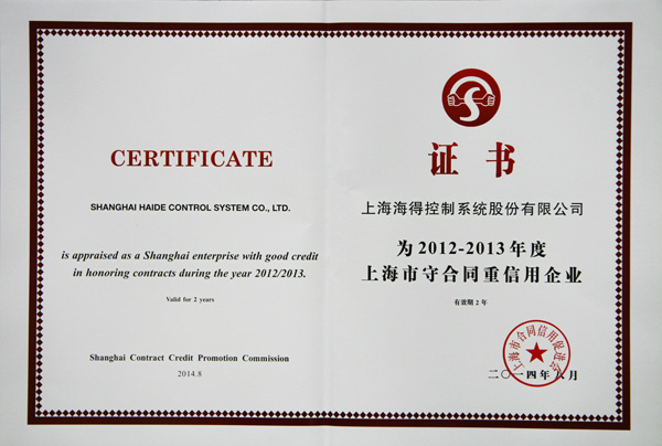 發布時(shí)間(jiān):2014-11-05日(rì)前,海(hǎi)得(de)控制(zhì)榮獲上(shàng)海(hǎi)市(shì)合同信用(y✘òng)促進會(huì)頒發的(de)“2012-2013守合同重信用(yòng)企業(yè)”稱号, 2012-€2013合同信用(yòng)等級獲評AAA。公司成立20年(nián)來(lái),堅持誠信經營,持續為(wèi)客戶創造最大(dà)價值,跻身(shēn)名列前茅的(de)國(guó)內(nèi)工(gōng)業(yè)自(zì)動化(huà)上(shàng)市(shì)公司,在行(xíng)業(yè)內(nΩèi)樹(shù)立了(le)良好(hǎo)口碑。