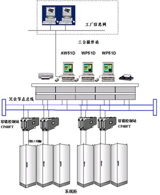 一(yī)對(duì)冗餘的(de)控制(zhì)處理(lǐ)控制(zhì)器(qì)CP60,現(xiàn)場(chǎng)總線組件(jiàn)(FBM),一(yī)♣台應用(yòng)操作(zuò)站(zhàn)處理(lǐ)機(jī)AW5101,兩台操作(zuò)站(zhàn)處理(lǐ)機(jī)WP5102,WP5103.
