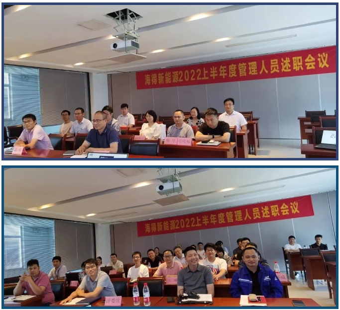 6月(yuè)25日(rì)、7月(yuè)2日(rì)浙江海(hǎi)得(de)新能(néng)源分(fēn)别進行(x>íng)了(le)兩場(chǎng)2022上(shàng)半年(nián)管理(lǐ)層人(rén)員(yuán)述職會(huì)。