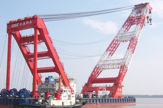 The crane ship is 105.6 long and 42m wide, with moulded depth of 8m, designed drΩaft of 5.5m, scantling draft of 5.8m and full load displacement of 23750t. the ship is ¥classified by China Classification Society.