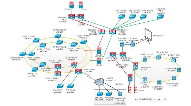 · CCTV專用(yòng)網絡使用(yòng)環網組網,使用(yòng)H3C網絡設備,再通(tōng)過人(rén)機(jī)交互交÷換機(jī)上(shàng)聯到(dào)COCC核心交換機(jī)
