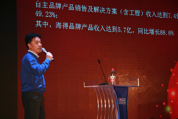 海(hǎi)得(de)控制(zhì)總經理(lǐ)郭孟榕作(zuò)“協同 深化(huà) 創新”的(de)工(gōng)作(zuò)報(bào)告。2015年(nián)公∑司實現(xiàn)了(le)全年(nián)收入的(de)穩步增長(cháng),其中自(zì)主品牌産品銷售及解決方案(含工(gōng)程)收入同比增長(cháng)近(jìn)♠50%,滿足市(shì)場(chǎng)需求的(de)新産品層出不(bù)窮,新業(yè)務模式初見(jiàn)成效,重點新客戶開(kāi)發成λ績不(bù)菲。面對(duì)2016年(nián)的(de)危機(jī)與挑戰,公司将進行(xíng)組織資源整合,成立智能(néng)制(zhì)造闆塊,發揮協同效應,增₹強業(yè)務聚焦,提高(gāo)運營效率。通(tōng)過2016年(nián)的(de)不(bù)斷協同、深化(huà)與創新,實現(xiàn)業(yè↓)務轉型升級,提升核心競争力,保持業(yè)績的(de)高(gāo)速增長(cháng)。
