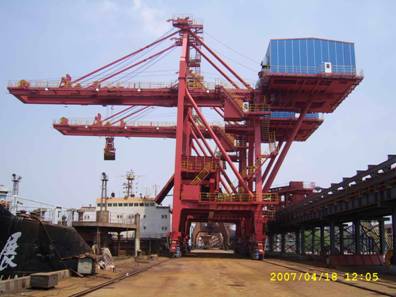 The unloader is a bridge-type grab ship unloader desi&gned by Wuxi Gongli engineering machinery plant for Shanghai Electric Power Co., Ltd.Yangshupo power plant.