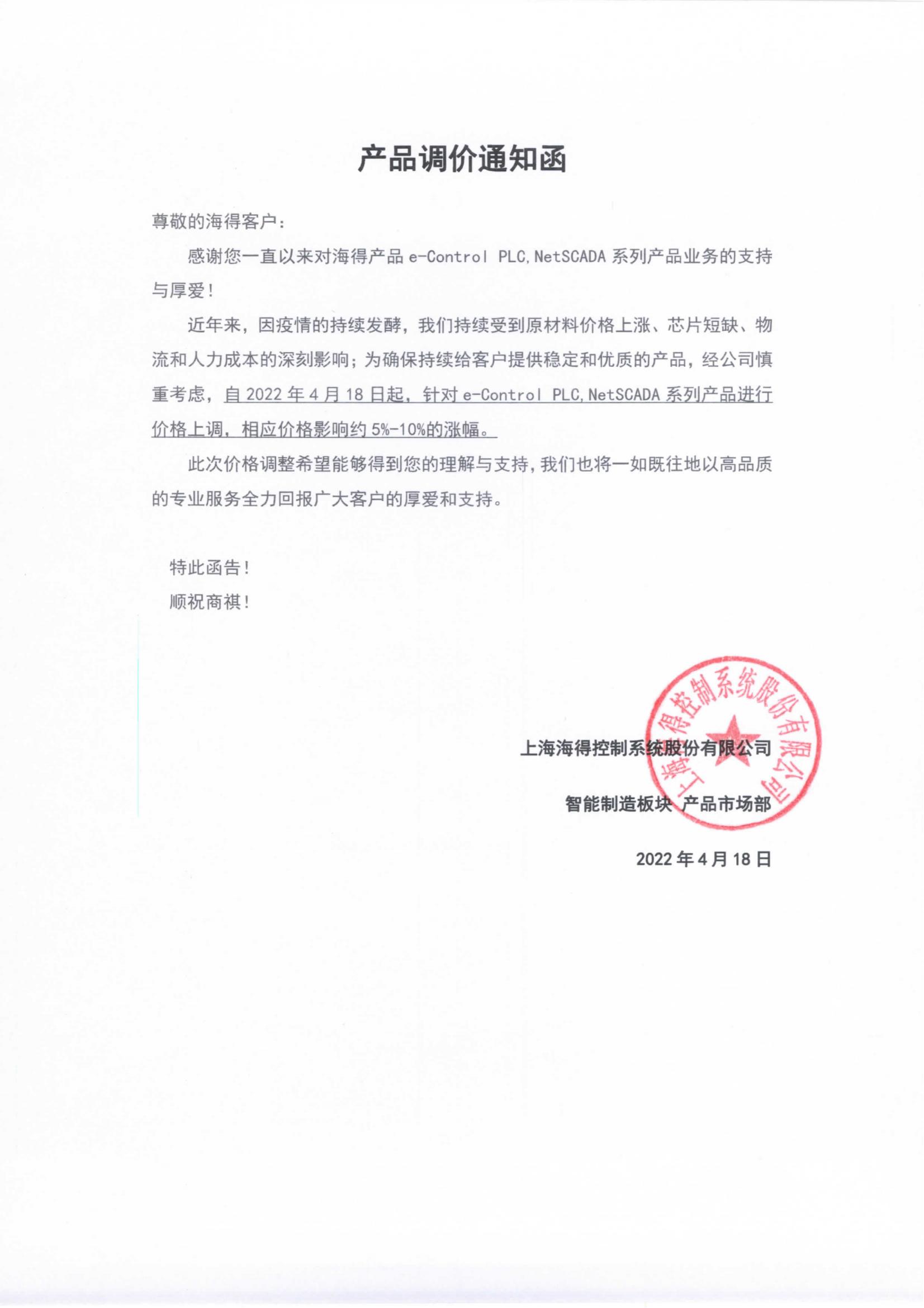 産品調價通(tōng)知(zhī)!