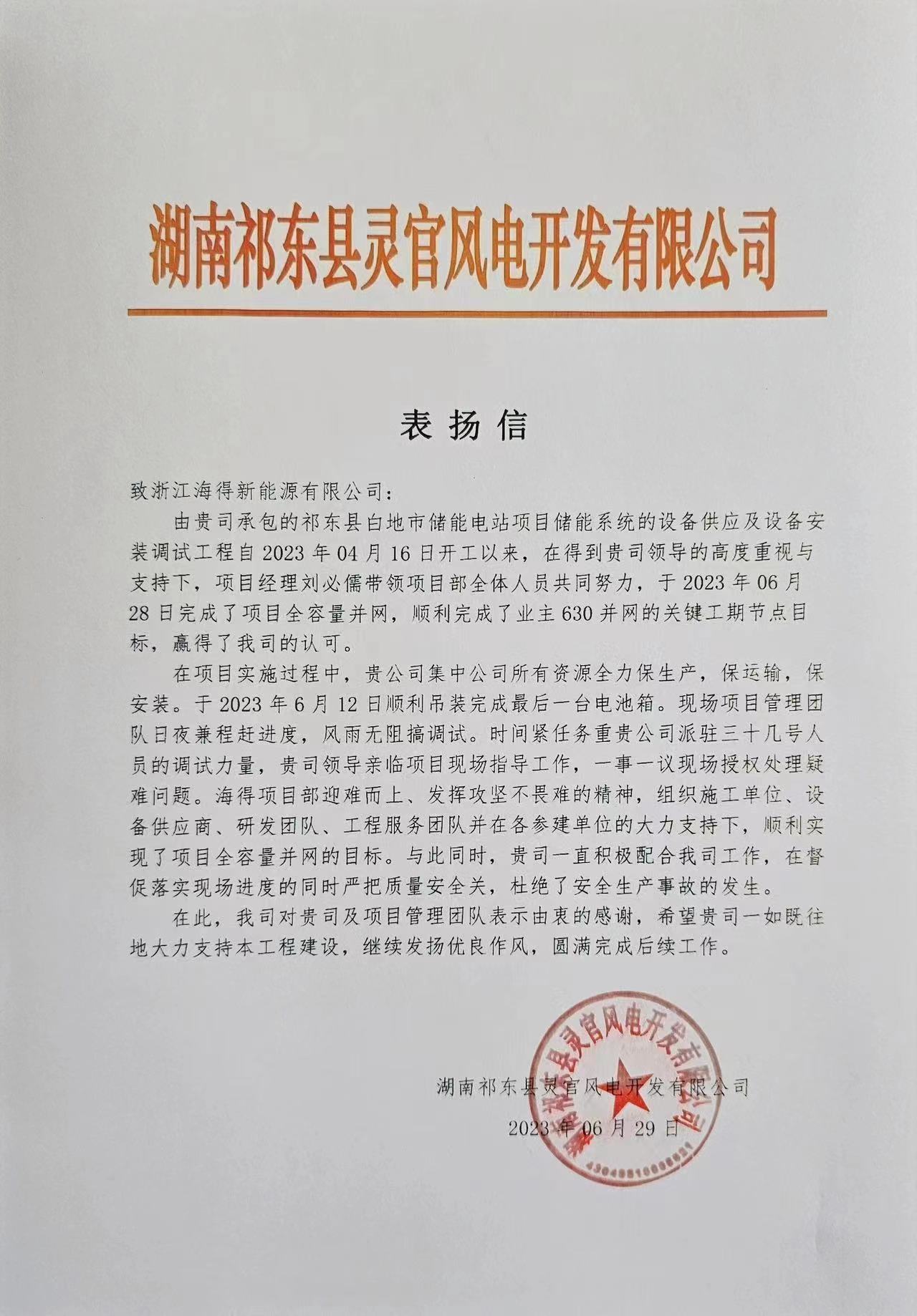 今年(nián)是(shì)儲能(néng)業(yè)務二個(gè)市(shì)場(chǎng)(國(guó)內(nèi)/海(hǎi)外(wài)&)二個(gè)産品(源網側/工(gōng)商儲)發展戰略的(de)破局之年(nián)。為(wèi)了(le)滿足項目應用(yòng)需求,海(hǎi)得(de)開(kāi)發了(le)高(gā♠o)能(néng)效、高(gāo)安全的(de)儲能(néng)産品,以最短(duǎn)的(de)時(shí)間(jiān)交付儲能δ(néng)産品,并深入項目所在地(dì),與客戶面對(duì)面協調,溝通(tōng),盡最大(dà)能(néng)力和(hé)最快(kuài)的(de)速度為(wèi)項目應用(yòng)提供了(le)堅強保障,助力項目成功并網。