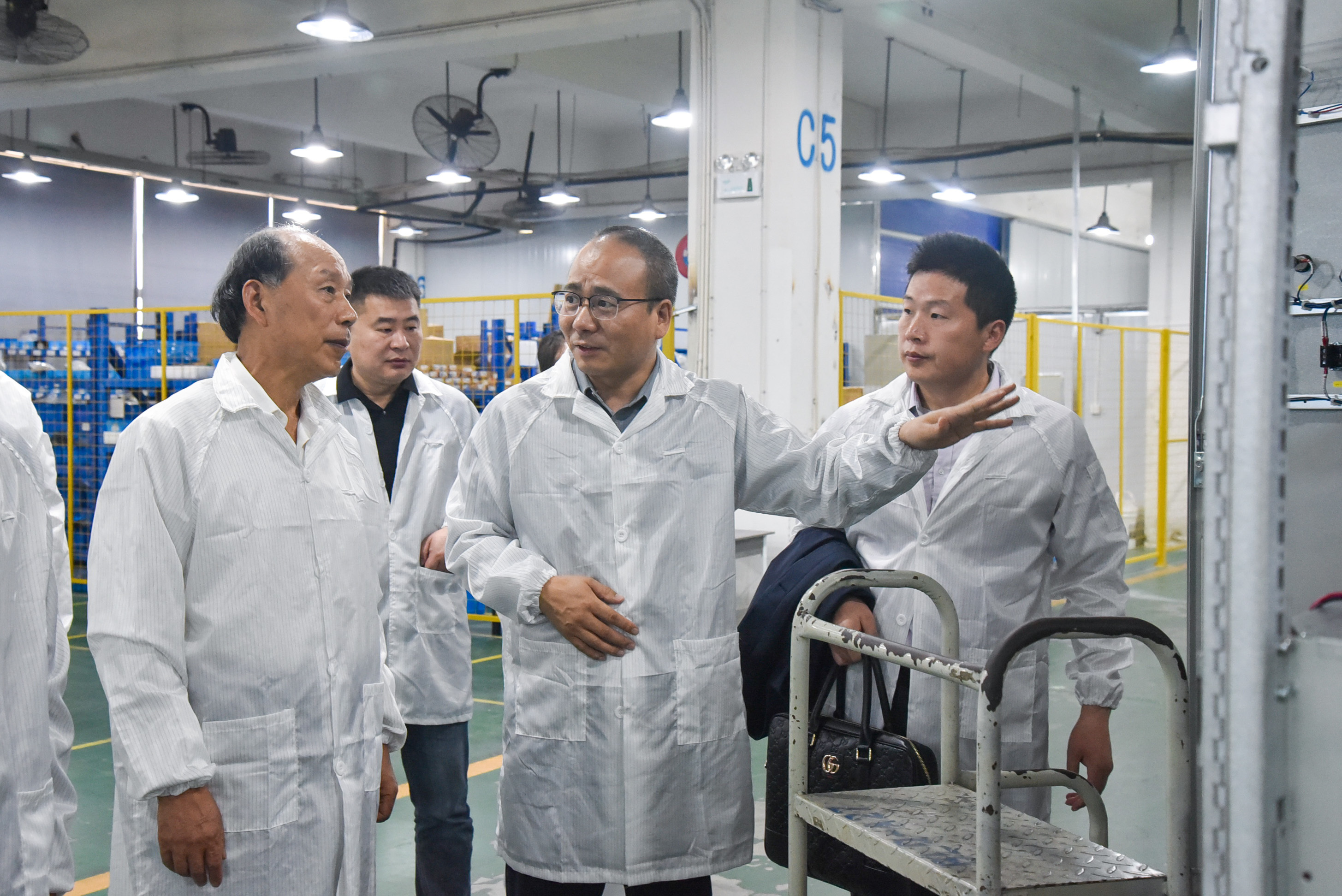 中油泰富集團董事(shì)長(cháng)胡玉興一(yī)行(xíng)先後來(lái)到(dào)钣↓金(jīn)車(chē)間(jiān)、總裝車(chē)間(jiān)和(hé)測試現(xiàn)場(chǎng),對(duì)海(hǎi)得(de)新能(néng)源的(de)生"(shēng)産、研發、測試能(néng)力進行(xíng)實地(dì)考察。