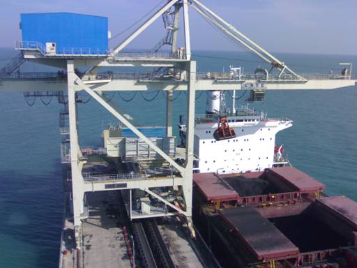 1500t/h bridge-type grab ship unloader at Indonesia TJB plant