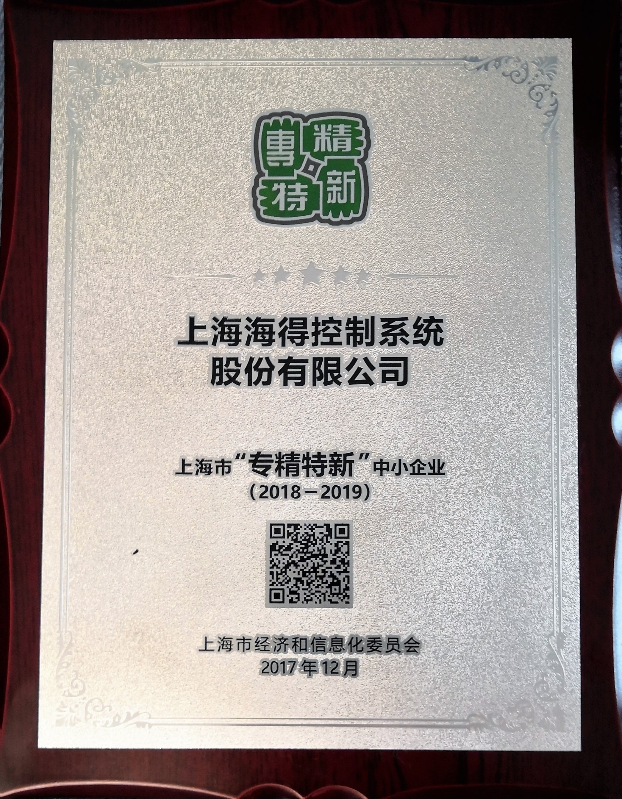 海(hǎi)得(de)控制(zhì)榮獲上(shàng)海(hǎi)市(shì)專新特精中小(xiǎo)企業(yè)