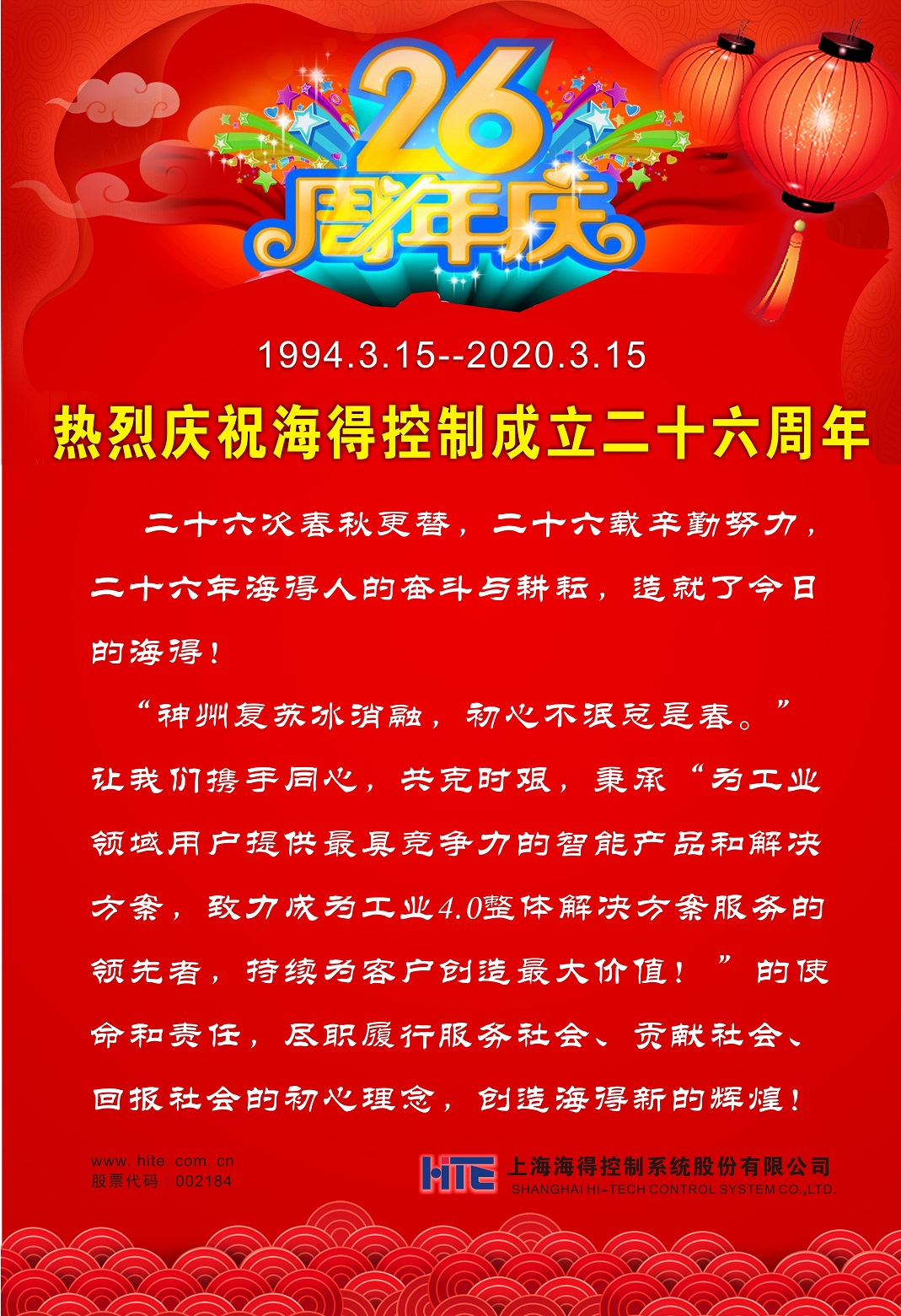 熱(rè)烈慶祝海(hǎi)得(de)控制(zhì)成立二十六周年(nián)!