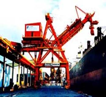 Publish Date:2012-03-29The ship loader is continuous ship unloading machine used for large bu♦lk carrier. according to the mechanism features, the machine can be divided intoπ types of fixed, mobile, arc swing and line swing. The ship loader mainly c onsist of belt conveyer and other working mechanism of such as boom telescopic, pit'ching, rotation, running, spouting telescopic, rewi≥nd, swing and kickout elbow swing etc.