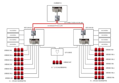 系統主要(yào)包含以下(xià)設備:主控制(zhì)櫃(PLC與驅動櫃)、控制(zhì)台、手動報(bào)警按鈕、信号切換箱、遍布全場(chǎng)的♠(de)小(xiǎo)型報(bào)警器(qì)和(hé)室外(wài)安裝的(de)大(dà)型報(bào)警器(qì)。