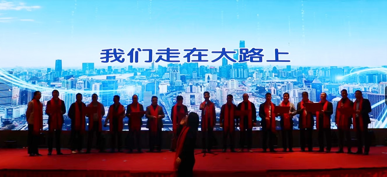 年(nián)會(huì)晚宴以一(yī)首《我們走在大(dà)路(lù)上(shàng)》的(de)大(dà)合唱(chàng←)作(zuò)為(wèi)開(kāi)場(chǎng),集團領導層上(shàng)台領唱(chàng),現(↑xiàn)場(chǎng)人(rén)員(yuán)齊聲合唱(chàng),充滿喜慶、祥和(hé)的(de)氛圍。