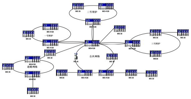 包鋼新體(tǐ)系轉爐以及連鑄網絡通(tōng)訊系統平台主要(yào)有(yǒu)一(yī)号轉爐,二号"轉爐和(hé)三号轉爐,以及連鑄網絡,公共網絡。要(yào)求采用(yòng)工(gōng)業(yè)級環網設計(jì),要(yào)求環網設備或者鏈路(lù)上(shàng)發生(shēng)δ故障時(shí),工(gōng)業(yè)級環網協議(yì)完成故障切換的(de)收斂時(shí)間(jiān)不(bù)得(de)超過50ms以上(shàng),并且能(néng)夠提供一♠(yī)套管理(lǐ)交換機(jī)的(de)網管軟件(jiàn),實現(xiàn)對(duì)在線設備的(de)實時(shí)配置或者監控,便于管理(lǐ)人(rén)員(y•uán)的(de)後期維護,由于生(shēng)産過程中對(duì)網絡的(de)實時(shí)數(shù)據傳輸以及可(kě)靠性要(yào)求非常高(gāo),所有(yǒu)不(bù)同$體(tǐ)系的(de)網絡必須基于高(gāo)冗餘的(de)網絡設計(jì)原則。采用(yòng)的(de)德國™(guó)工(gōng)藝Hirschmann設備能(néng)夠在硬件(jiàn)的(de)可(kě)靠性以及技(jì)術(shù)上(shàng)給予最大(dà)的(de)安全保障。