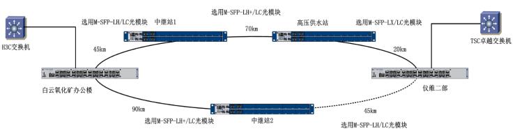 包鋼至白(bái)雲稀土(tǔ)礦遠(yuǎn)距離(lí)傳輸網絡采用(yòng)德國(guó)赫思曼網絡産品及其配件(jiàn)組建長(cháng)距離(lí)網絡傳輸平台。白(bái)雲巴潤∏礦業(yè)公司到(dào)包鋼計(jì)量管理(lǐ)處光(guāng)纜要(yào)經過兩個(gè)中繼和(h∏é)一(yī)個(gè)高(gāo)壓室(水(shuǐ)庫),分(fēn)别在白(bái)雲氧化(huà)礦辦公樓及包鋼β儀維二部放(fàng)置一(yī)台赫思曼千兆以太網工(gōng)業(yè)交換機(jī)MAR1040,在中繼站(zhàn)和(hé)高(gāo)壓供水(shuǐ)站(zhàn)分γ(fēn)别放(fàng)置一(yī)台MAR1030作(zuò)為(wèi)中繼設備,中繼設備和(hé)MAR≠1040組成千兆工(gōng)業(yè)以太環網,提高(gāo)網絡的(de)可(kě)靠性。由于傳輸距離(lí)遠(yuǎn),光(guāng)模塊使用(yòng)赫思曼适合長( cháng)距離(lí)傳輸的(de)産品型号