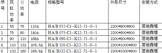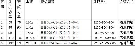 地(dì)鐵(tiě)風(fēng)機(jī)變頻(pín)櫃選型型号表