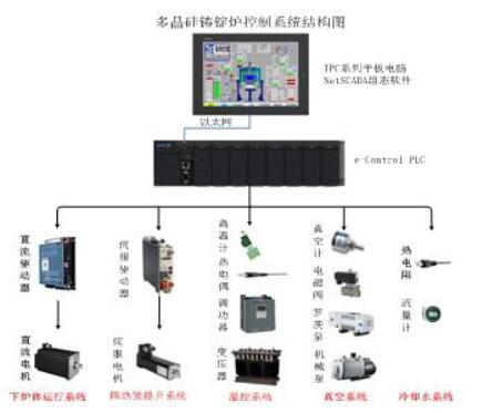 多(duō)晶矽鑄錠爐工(gōng)作(zuò)過程分(fēn)為(wèi):抽真空(kōng)、加熱(rè)、熔化(huà)∑、長(cháng)晶、退火(huǒ)、冷(lěng)卻等步驟;核心控制(zhì)功能(néng)為(wèi)熱(rè)場(chǎn g)溫度控制(zhì)及隔熱(rè)籠提升運動控制(zhì)。