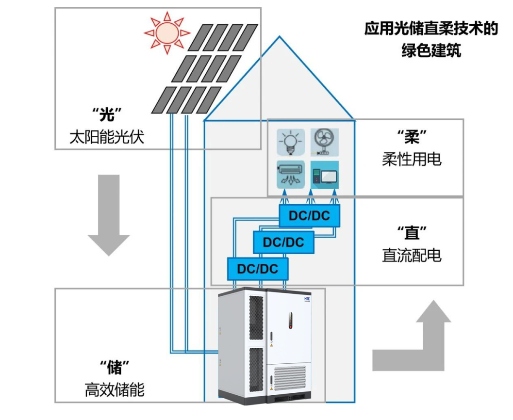 相(xiàng)關數(shù)據顯示,建築用(yòng)電(diàn)系統不(bù)斷進行(xíng)交流和(hé)直流的(de)轉換,會(huì)帶來(lái)近(jìn)10%的(de)轉換損失。因此,是(shì)否有(yǒu)途徑将光(guāng)伏發出的(de)直流電(diàn)直接用(yòng)于直流終端電(diàn)器(qì),大(dà)幅降低(dī)能(néng)量轉換損失,是(shì)電(diàn)氣技(jì)術(shù)發展的(de)方向之一(yī),光(guāng)儲直柔技(jì™)術(shù)也(yě)由此應運産生(shēng)。