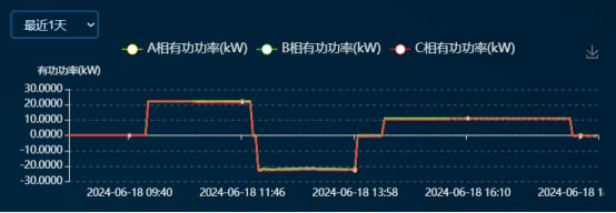 ▲100kW/233kWh 微(wēi)電(diàn)網智能(néng)配電(diàn)櫃運行(xíng)實時(shí)功率圖