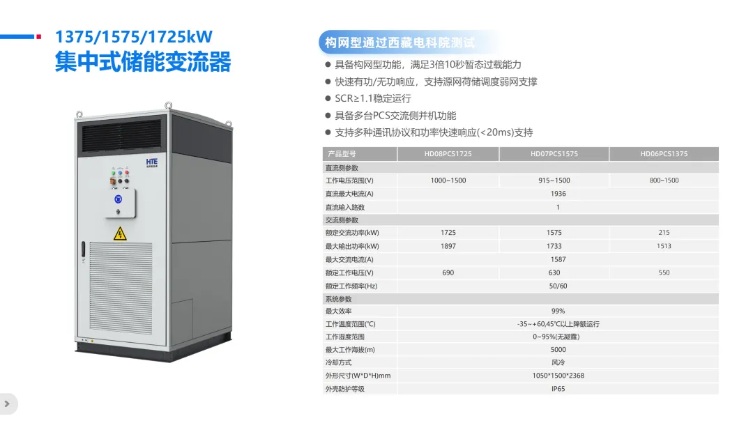 此次通(tōng)過中國(guó)電(diàn)科(kē)院構網全項測試的(de)HD08PCS構網型PCS自(zì)面世以來(lái),憑借其高(gāo)效、穩定、可(kě)靠的(£de)性能(néng)優勢,已實現(xiàn)2.4GW的(de)應用(yòng)規模。