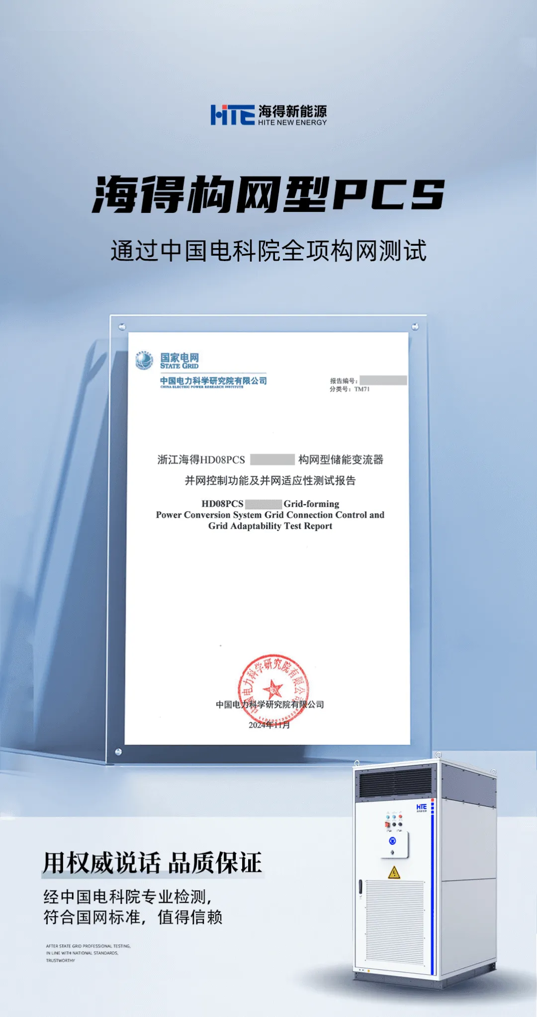 海(hǎi)得(de)新能(néng)源HD08PCS構網型儲能(néng)變流器(qì)通(tōng)過中國(guó)電(diàn)科(kē)院全項構網測試