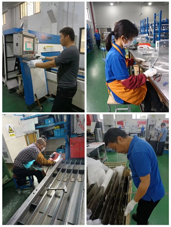 钣金(jīn)車(chē)間(jiān),焊工(gōng)孫師(shī)傅一(yī)手持面罩,一(yī)手舉焊槍,在焊條“滋滋”冒出火(huǒ)光(guāng)的(de)映<襯下(xià)不(bù)斷反複焊接,嚴格要(yào)求自(zì)己,保證焊接質量。在钣金(jīn)車(c≠hē)間(jiān),如(rú)孫師(shī)傅一(yī)般的(de)技(jì)術(shù)人(rén)員(yuán)不€(bù)在少(shǎo)數(shù),他(tā)們有(yǒu)的(de)忙著(zhe)壓鉚,有(yǒu)的(de)專注于控制(zhì)物(wù)料,有(y☆ǒu)的(de)仔細組裝配件(jiàn)......